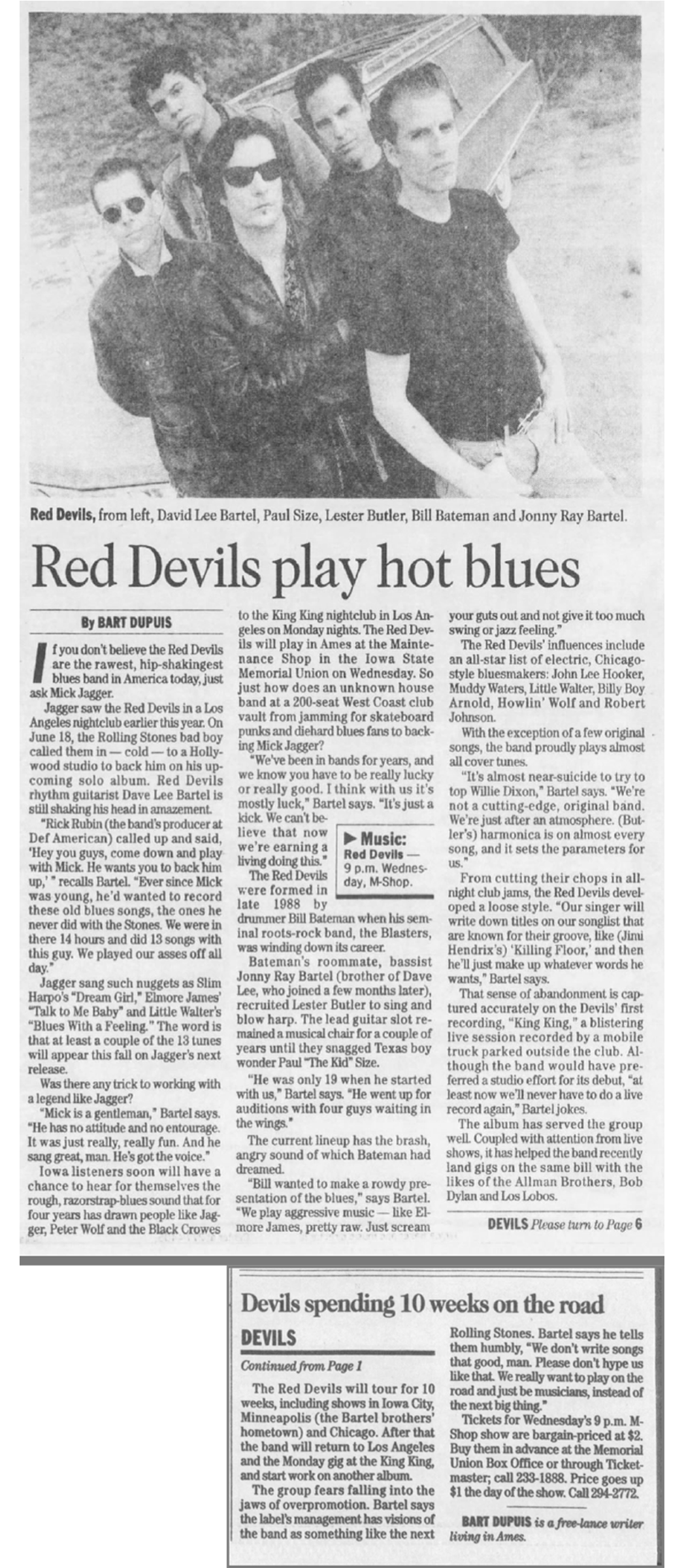 — “Red Devils play hot blues,” by Bart Dupuis, Des Moines Register, Sept. 3, 1992