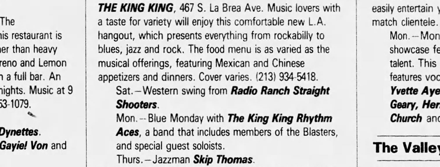 Who were 1989’s ‘King King Rhythm Aces’?