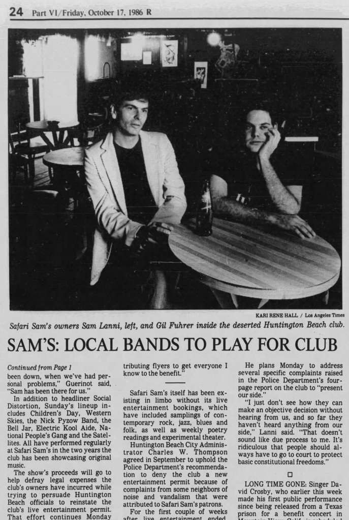 Just few months later, on Nov. 23, 1986, Safari Sam’s hosted a funeral for the death of the club, an end to its two-year run in Huntington Beach.