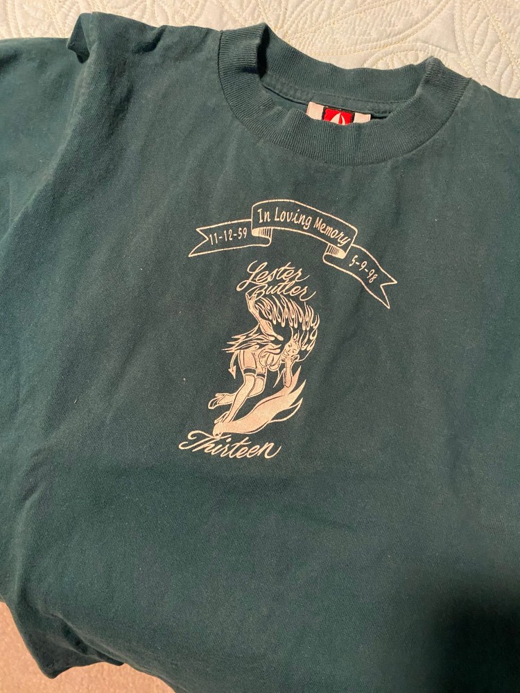 Most recently, he shared another poster for Lester Butler & 13 on May 2, 1997, (above) and an incredible green child-sized Lester Butler tribute T-shirt: