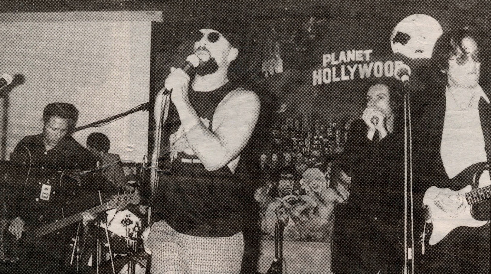 Bruce Willis and the Accelerators at Planet Hollywood Hong Kong. From left: John Bazz, Bruce Willis, Lester Butler and Doug Hamblin. Photo provided by John Bazz