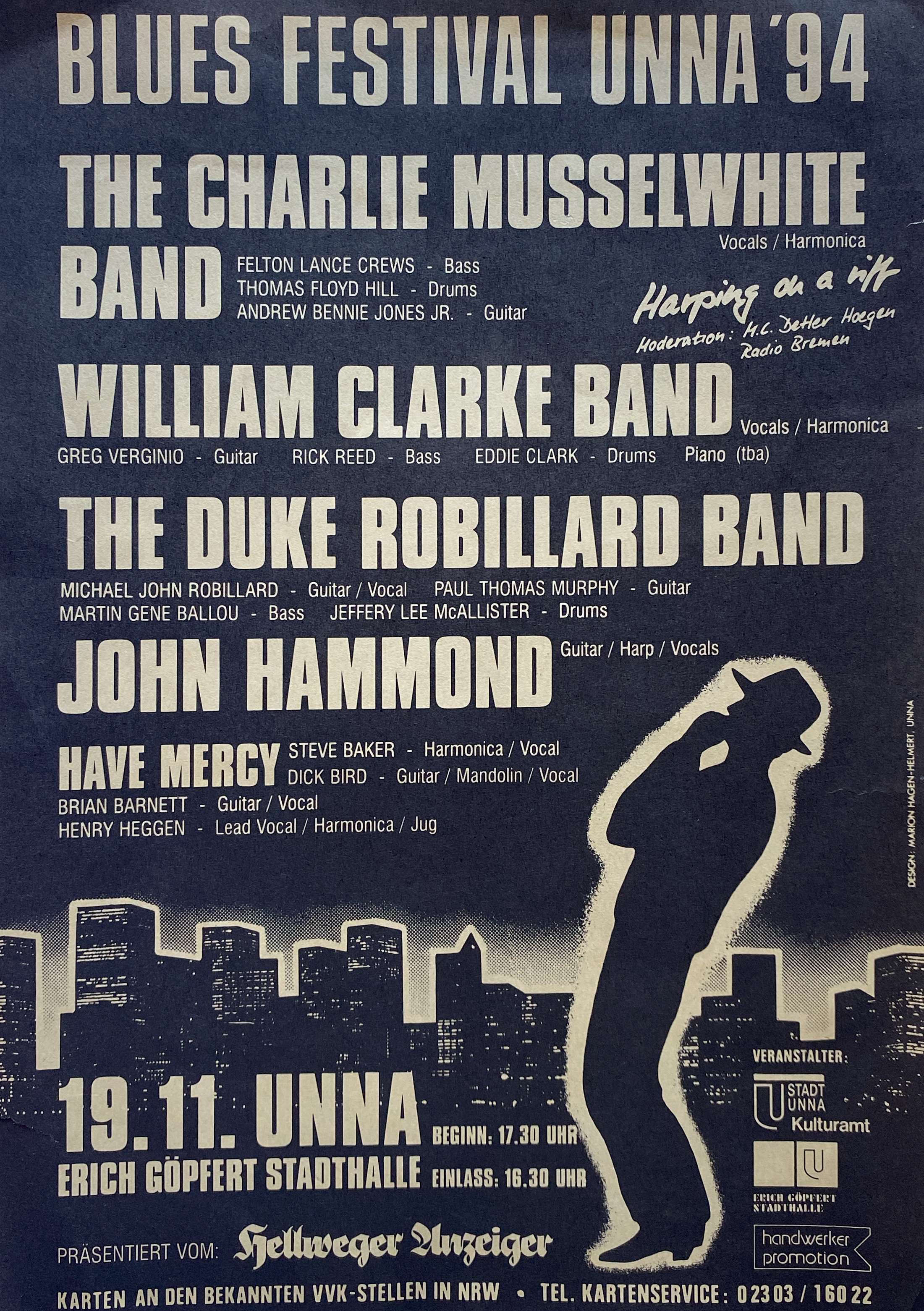 Previous Image Next Image William Clarke fliers 1 1 A flier from the Blues Festival Unna 1994, Germany.