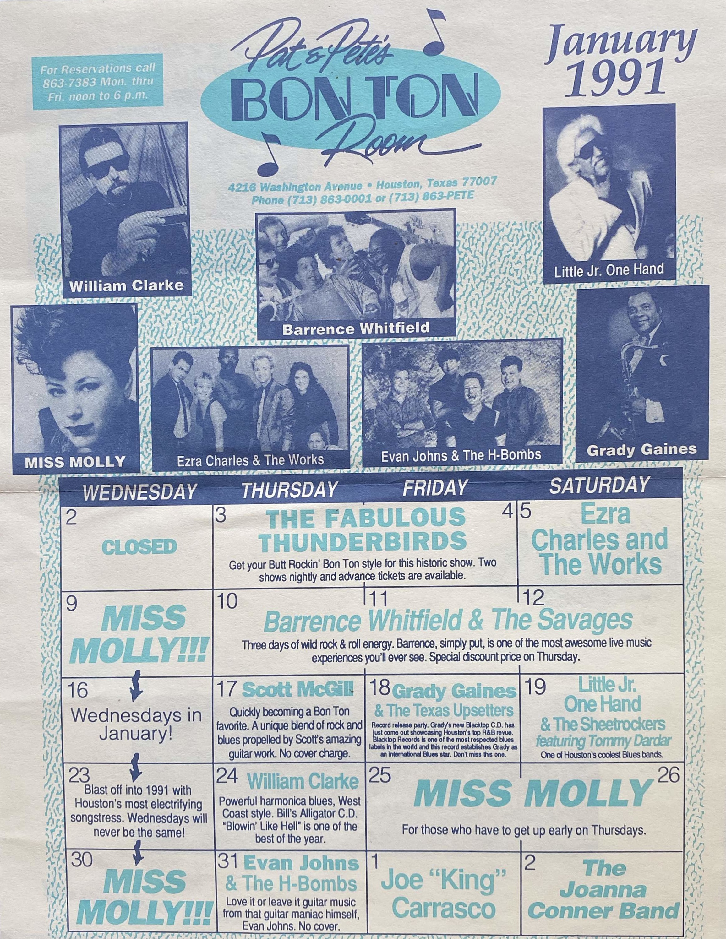 Previous Image Next Image William Clarke fliers 1 5 Pat and Pete’s Bon Ton Room, Houston Texas, January 1991.